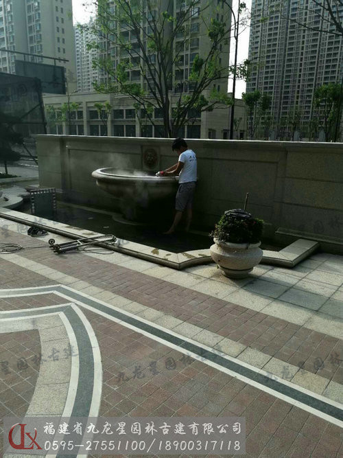 九龍星園林古建黃金麻水缽安裝現(xiàn)場(chǎng)
